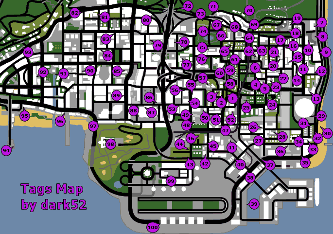 GTA San Andreas All 100 Tag Locations YouTube GTA San Andreas Game: GTA San Andreas TAGS Map, Locations, Spray Steam Community :: Guide :: All Tags in GTA:SA.